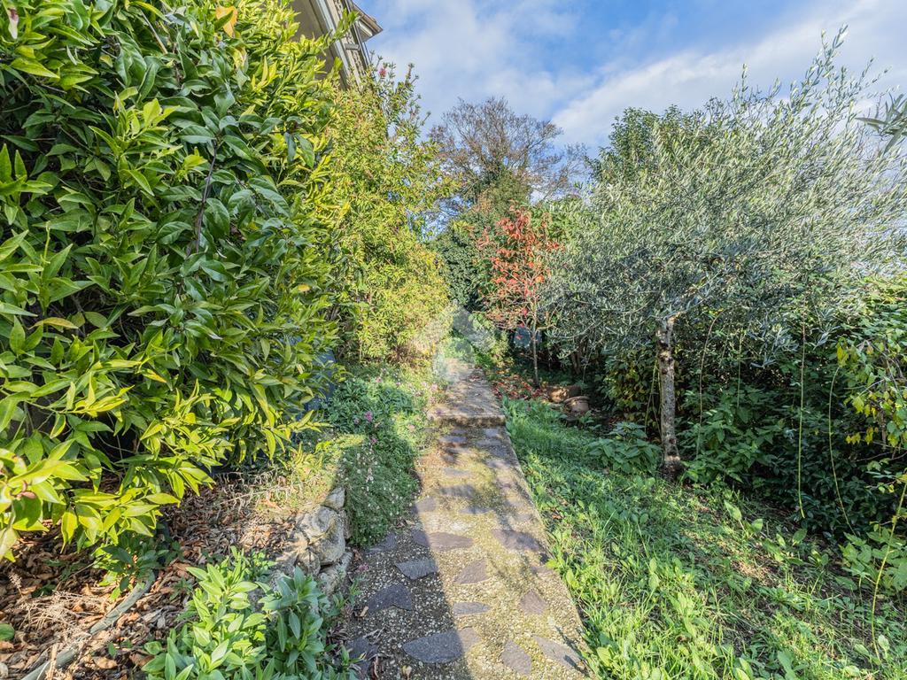 Esternamente, l’immobile è completamente circondato da un giardino curato e ricco di piante, che dona all’ambiente un’atmosfera serena e riservata.
