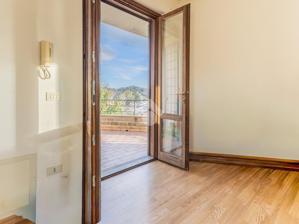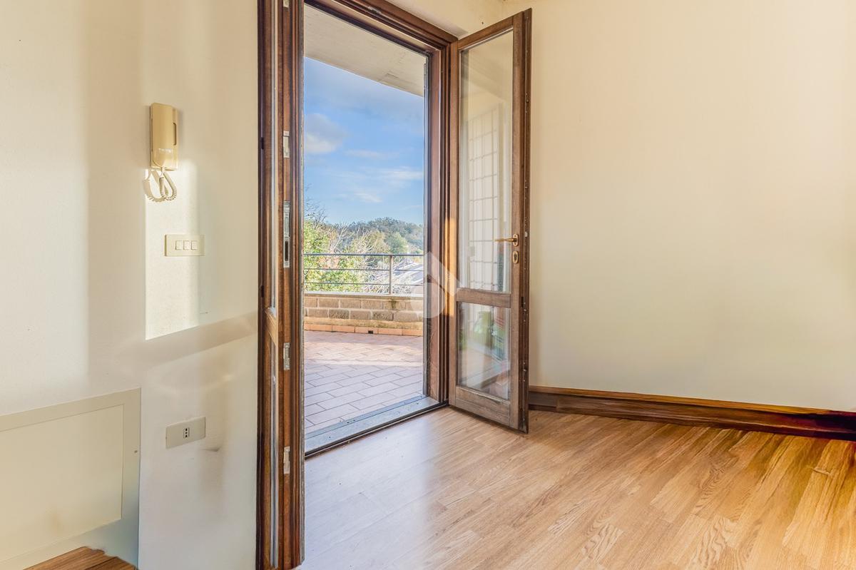 Il piano è valorizzato da un terrazzo vivibile che circonda parte dell’abitazione e regala una vista aperta e suggestiva sul paesaggio circostante.