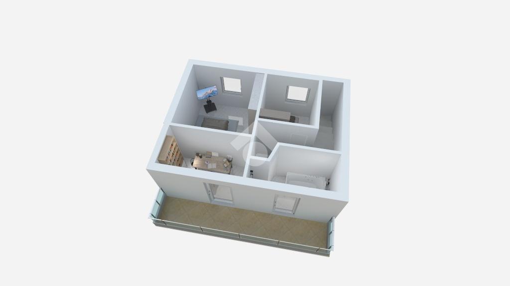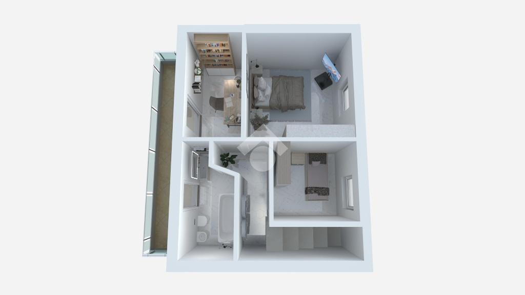Il piano superiore ospita la zona notte, composta da una camera matrimoniale con accesso diretto al balcone, due ulteriori camere e un bagno finestrato con vasca.