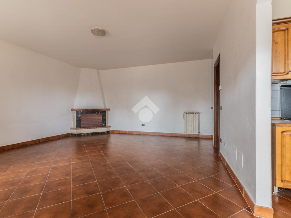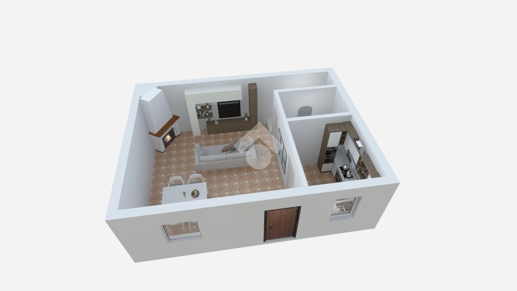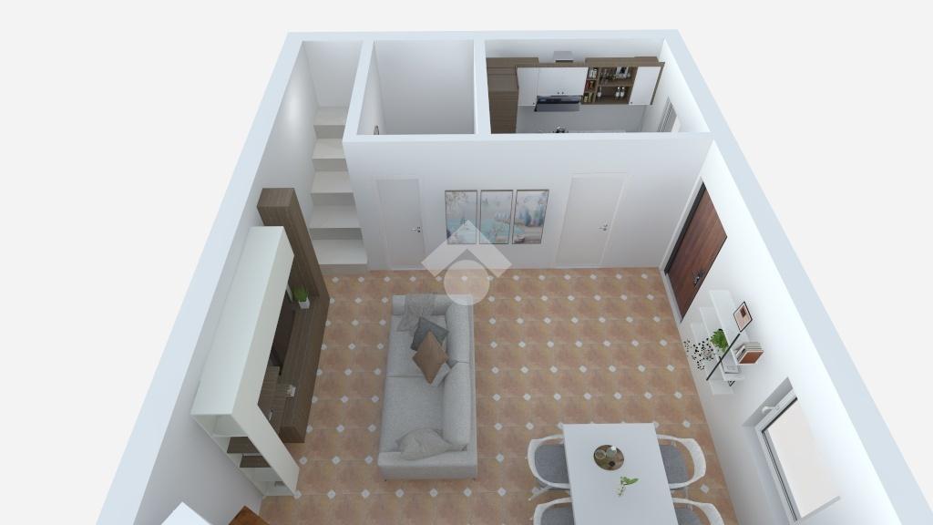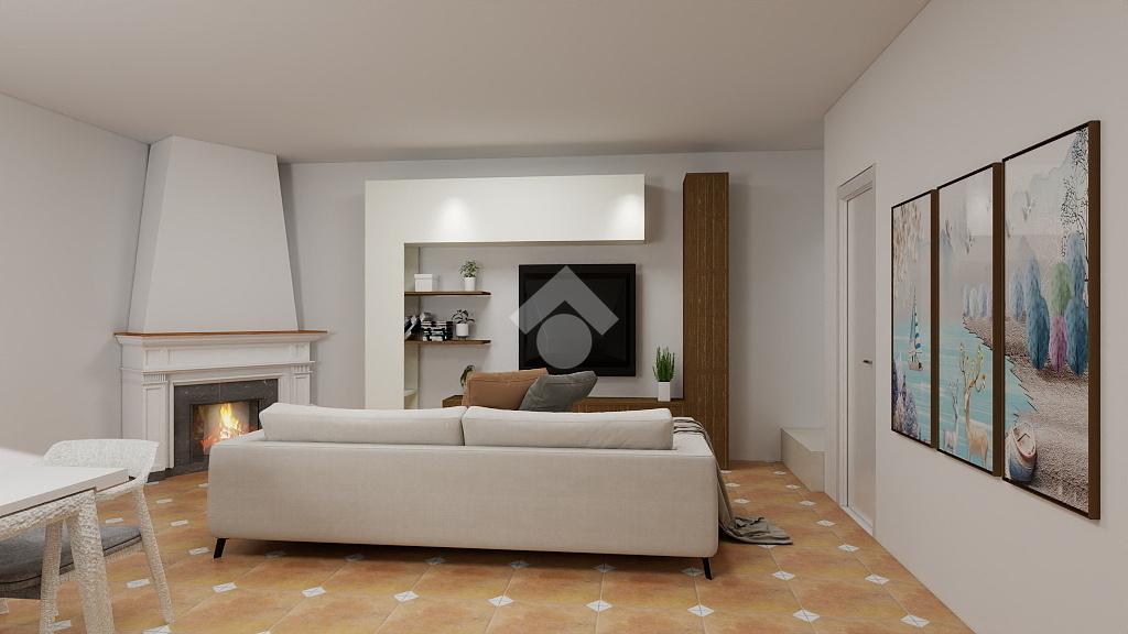 Al piano terra troviamo un accogliente soggiorno con camino, collegato tramite un elegante arco alla cucina, oltre a un comodo bagno di servizio.