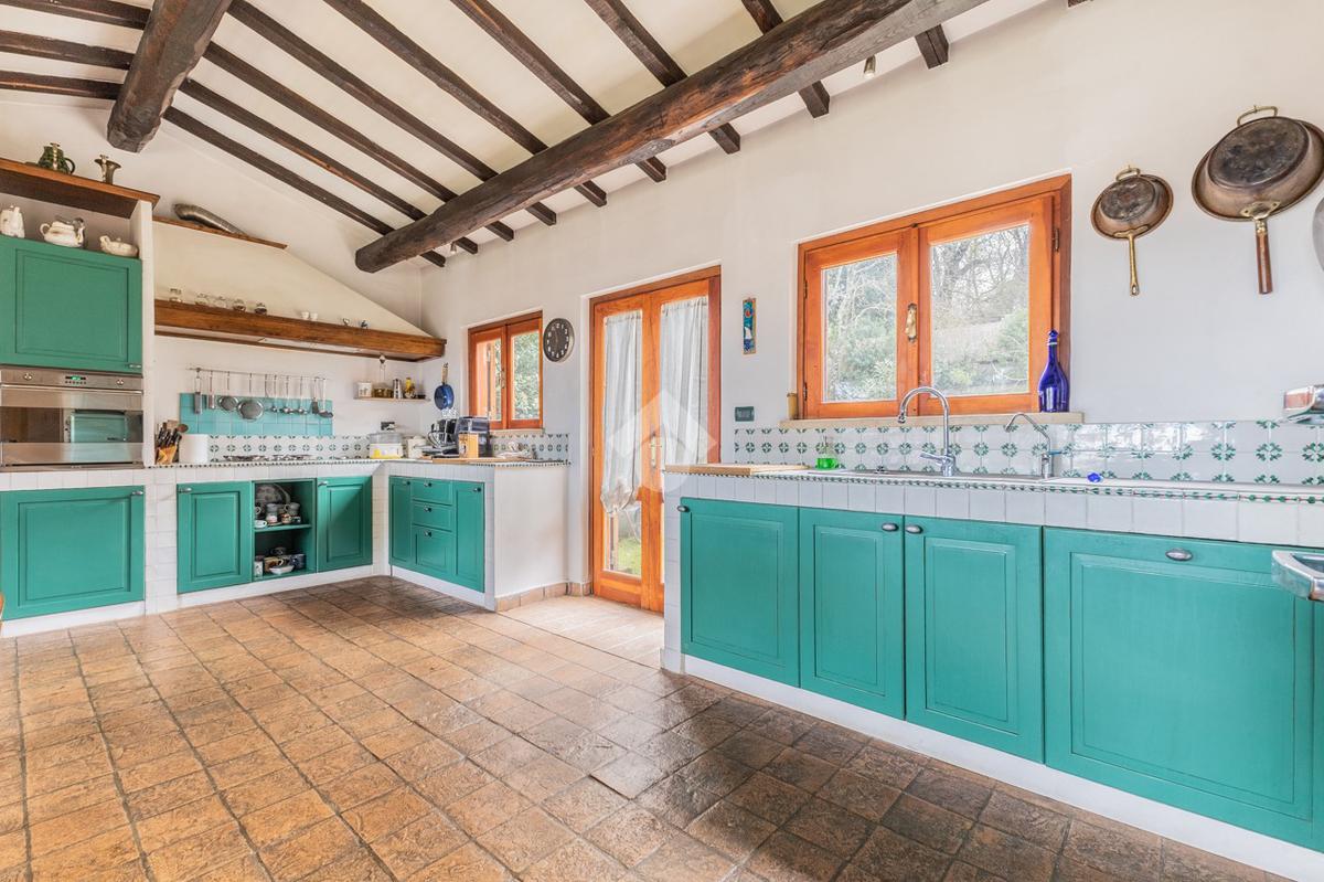 Al piano terra troviamo un accogliente soggiorno con camino, cuore della casa, ideale per momenti di convivialità. La cucina, ampia e funzionale, è valorizzata da una grande vetrata con affaccio sul verde, che regala continuità visiva con l’esterno.
