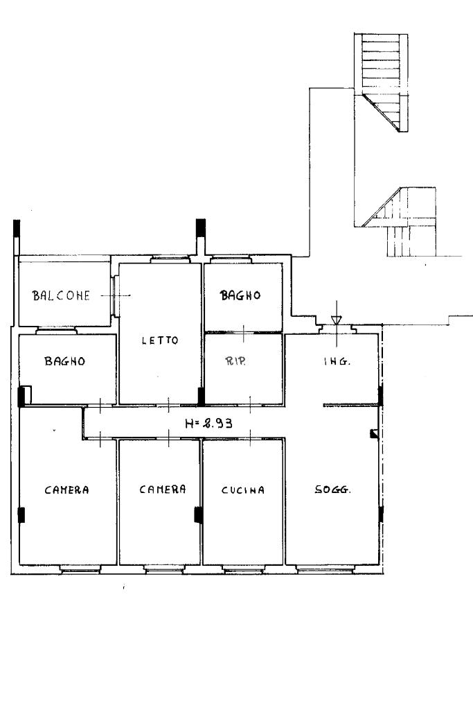 La zona notte comprende due camere matrimoniali, di cui una con accesso diretto al terrazzino tramite porta finestra, una terza camera e un secondo bagno finestrato con vasca.