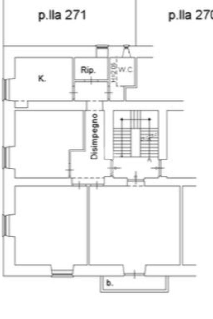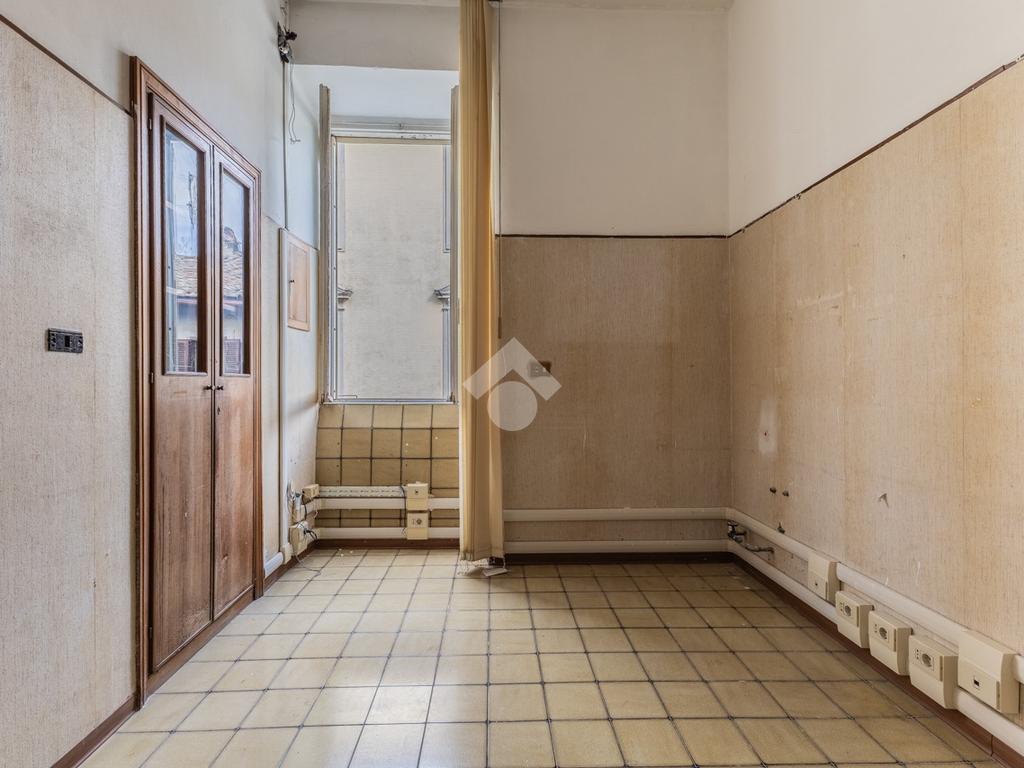 Grazie alla presenza di un tramezzo tra le due stanze principali, la distribuzione interna può essere facilmente rivista, offrendo la possibilità di realizzare un grande living di rappresentanza con affaccio sulla piazza, valorizzando ulteriormente gli spazi.