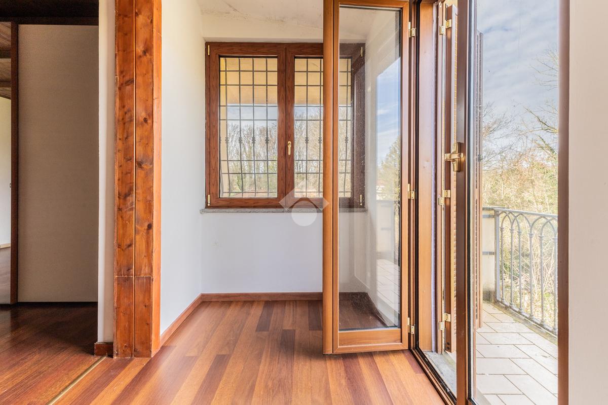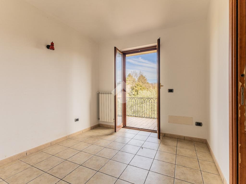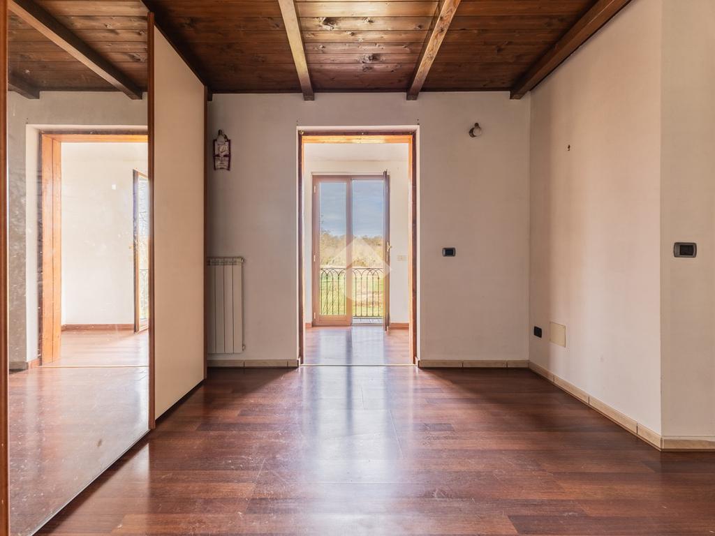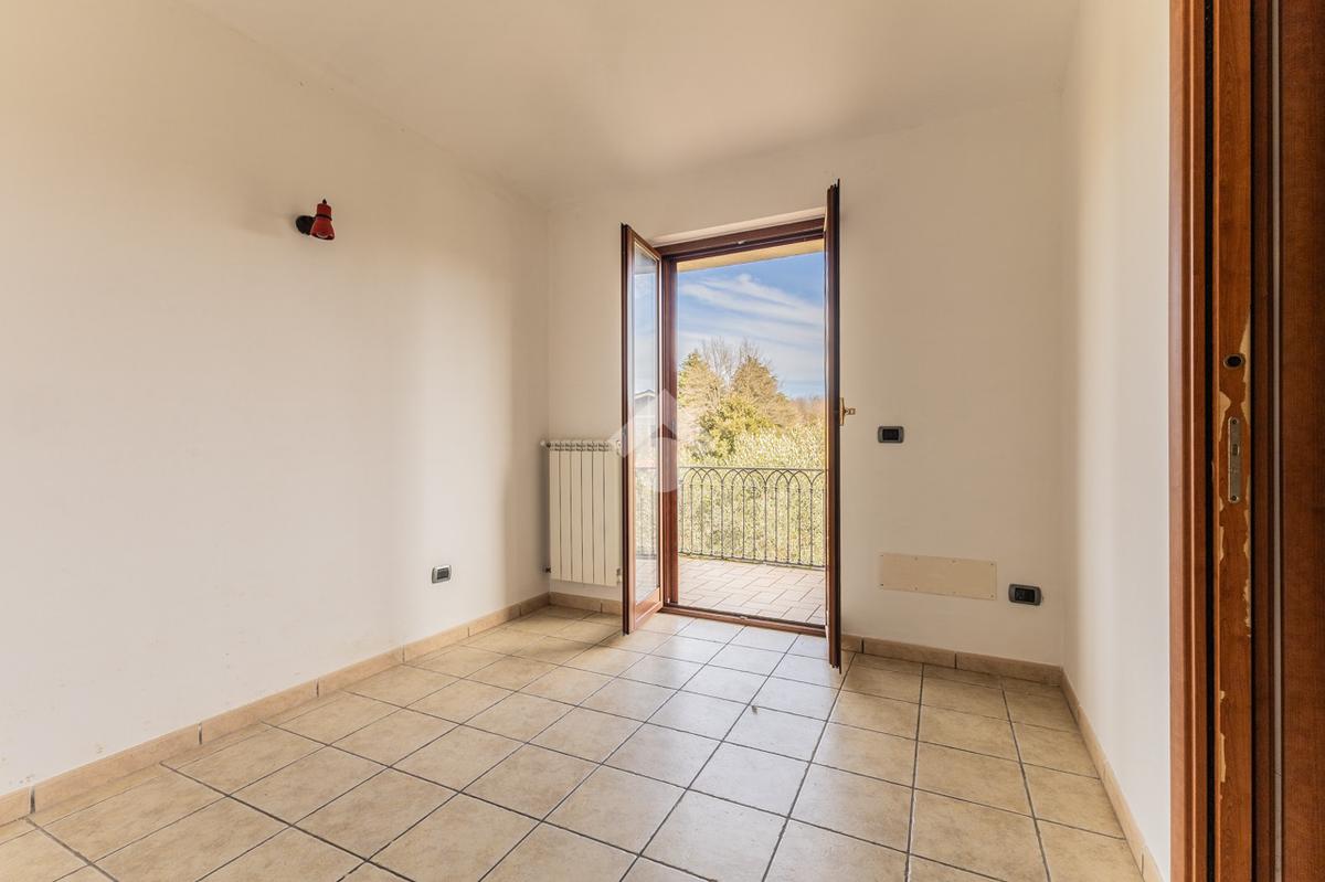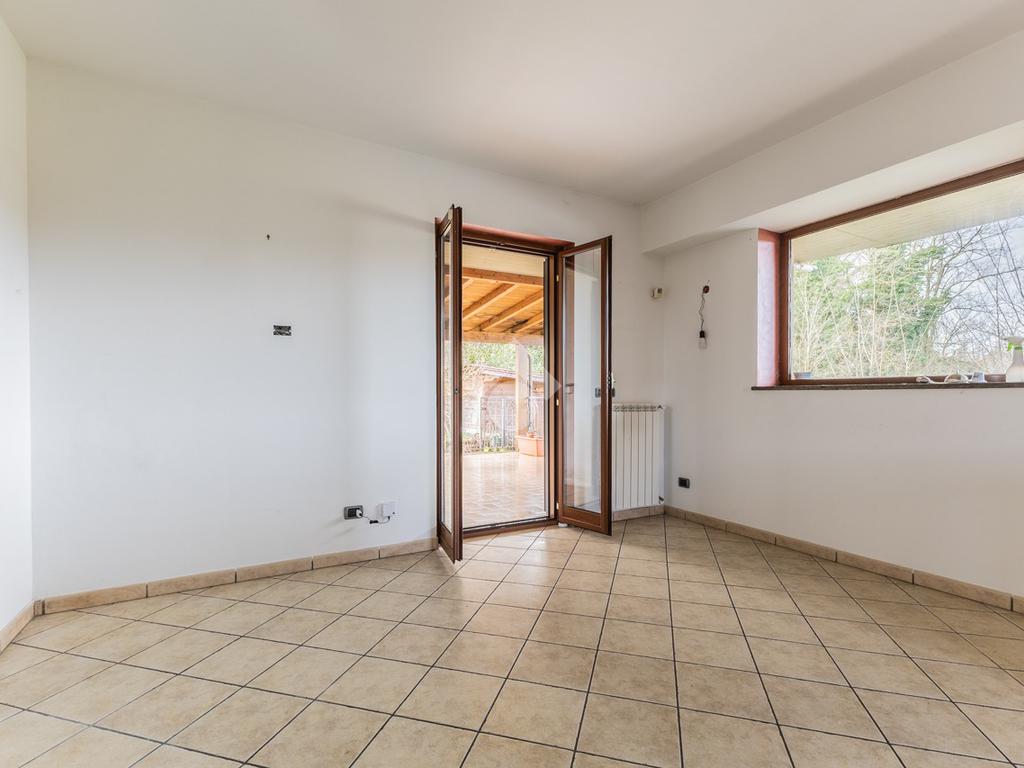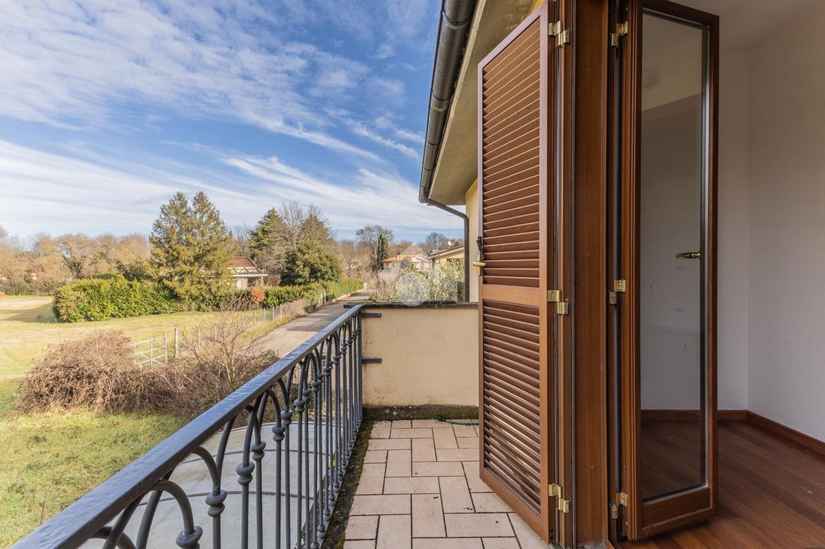 Il piano superiore, collegato da scala interna, ospita una camera matrimoniale con possibilità di realizzare una cabina armadio o uno studio, una cameretta e un bagno con doccia. Entrambe le camere dispongono di balcone privato con affaccio sul giardino e sul verde circostante