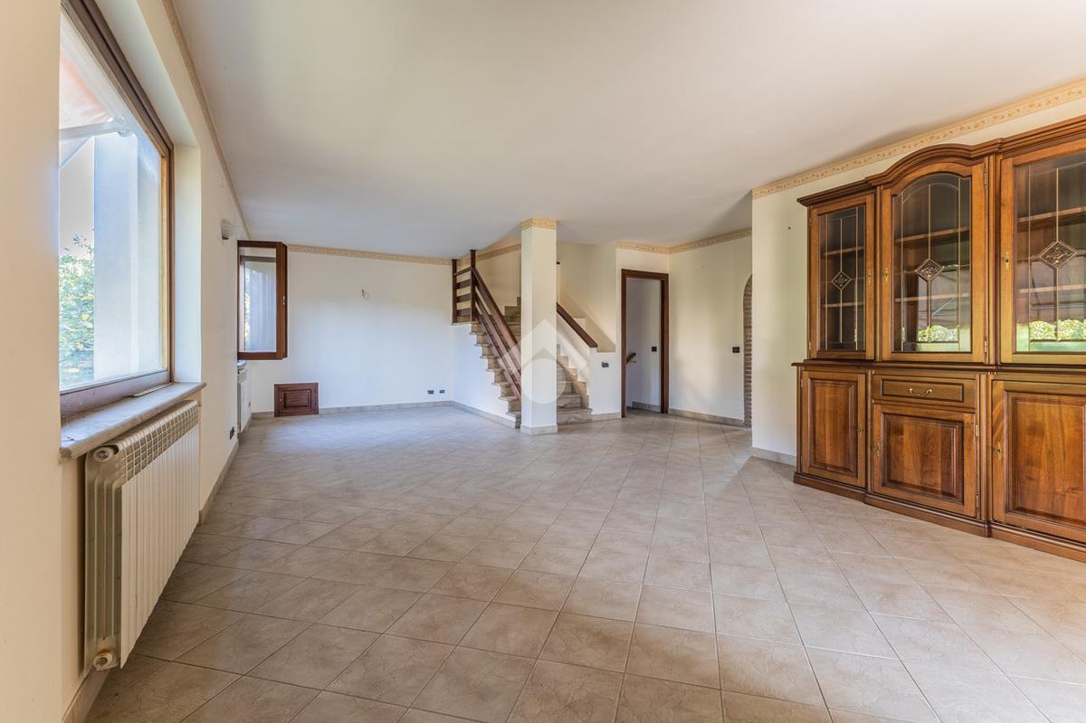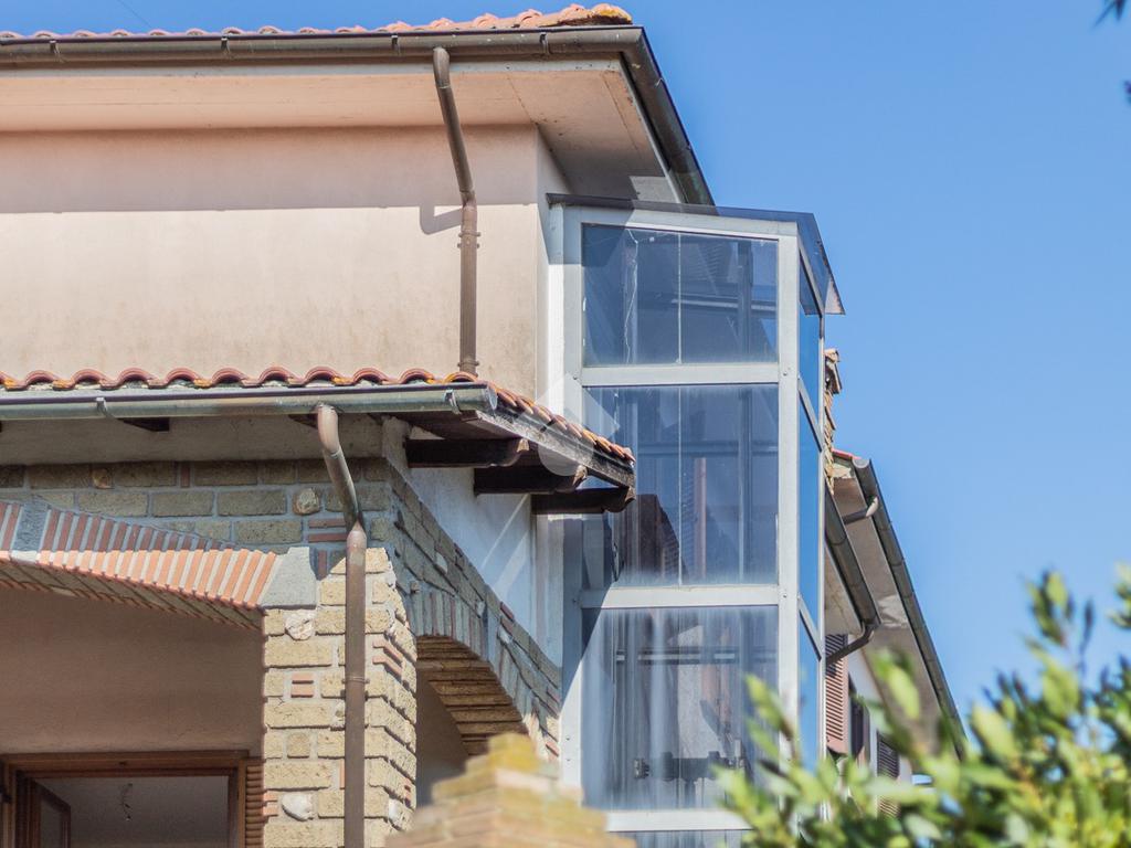 In una zona residenziale tranquilla e vicina al centro del paese, proponiamo in vendita una porzione di villa indipendente di ampia metratura, dotata di ascensore interno e giardino privato.